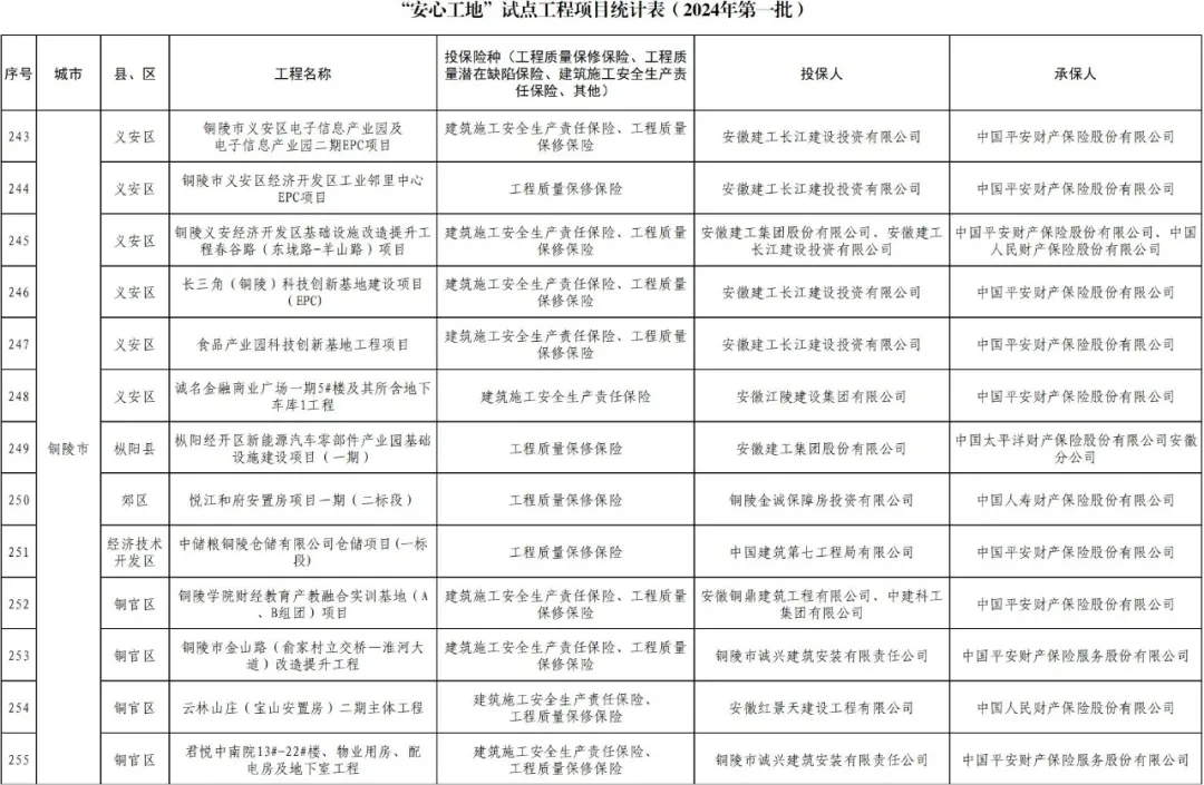 目前,安徽省2024年“四個工地”(第一批)試點工程項目名單已公布,我市共有“紅色工地”試點工程項目6個,“綠色工地”試點工程項目7個,“智慧工地”試點工程項目5個,“安心工地”試點工程項目13個。