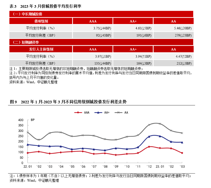 6. 3月份長期限各等級城投債發(fā)行利率均下行、發(fā)行利差收窄