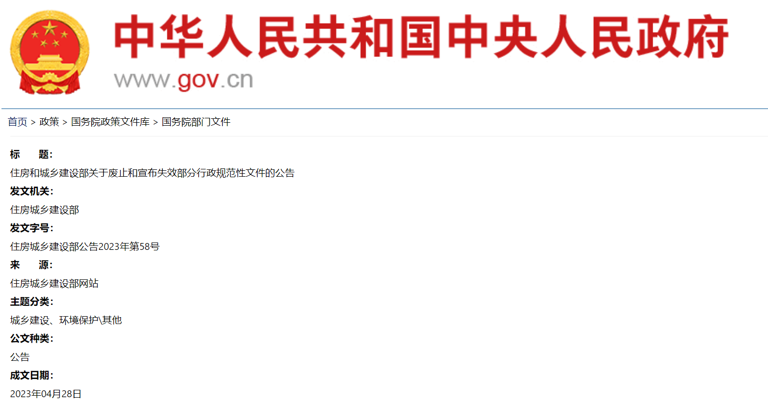 【轉(zhuǎn)載-政策文件】住房和城鄉(xiāng)建設(shè)部關(guān)于廢止和宣布失效部分行政規(guī)范性文件的公告