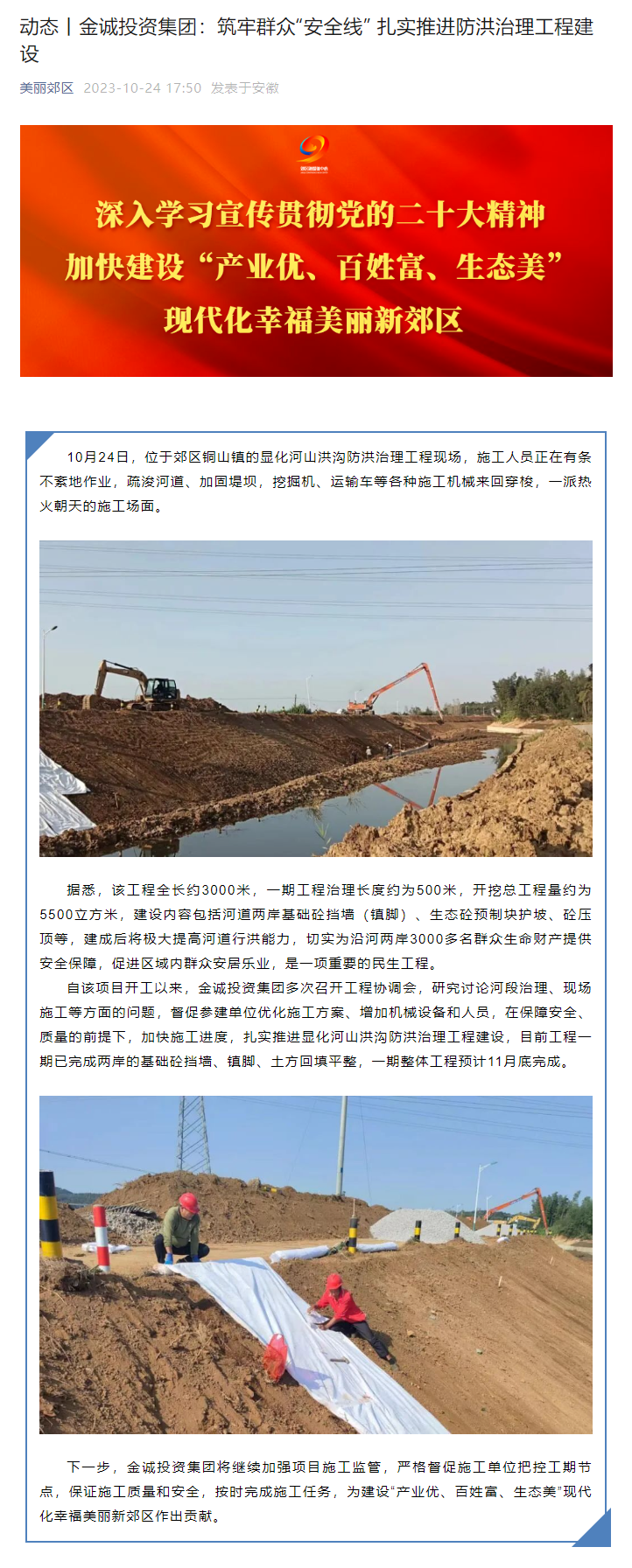 動態丨金誠投資集團:筑牢群眾“安全線” 扎實推進防洪治理工程建設