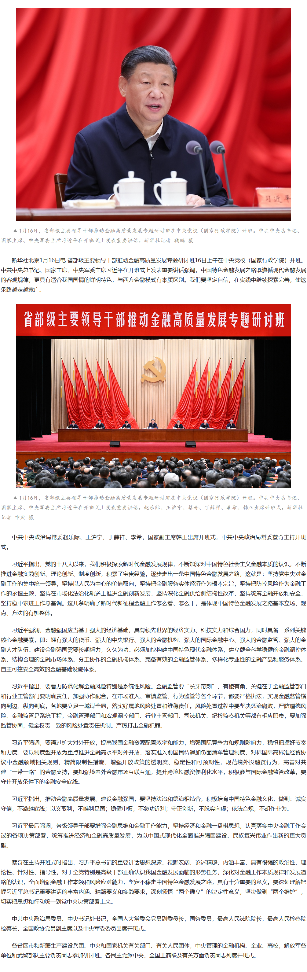 習近平在省部級主要領導干部推動金融高質量發展專題研討班開班式上發表重要講話