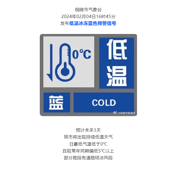 2月4日銅陵發布藍色預警